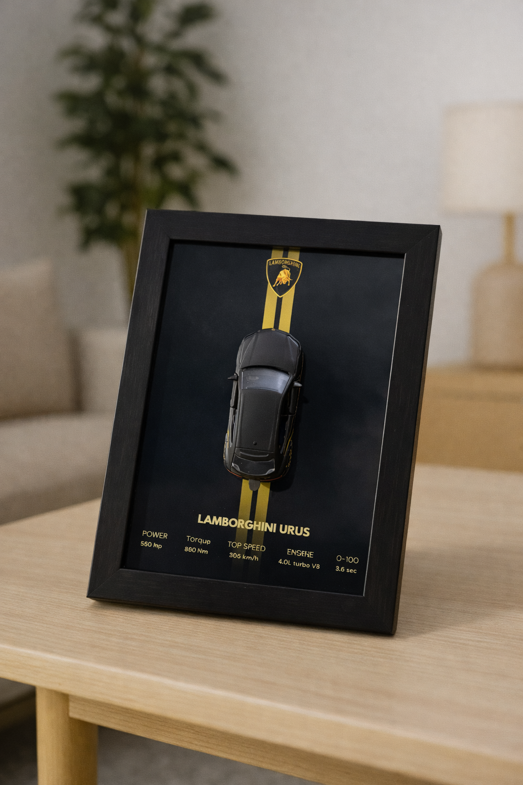 Black Lamborghini Urus 3d Hotwheels Car Frame (Majorette)